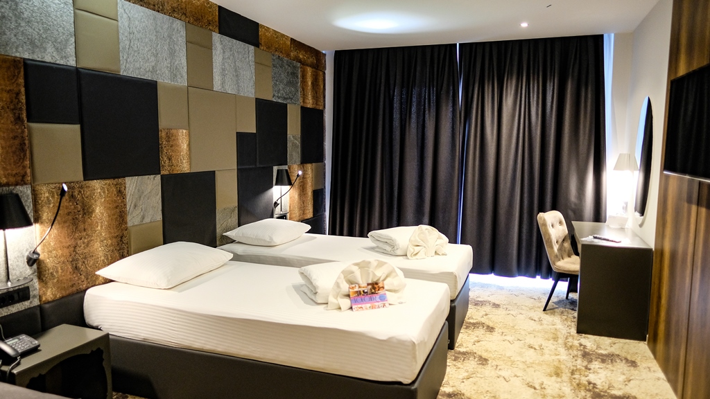 The rooms and suites (466 units) are rated as four and five stars; superior and deluxe. Rooms and apartments are spacious, decorated and equipped in the highest European standards. All rooms are equipped with king size beds, SAT and local TV, direct phone line and wireless internet connection, mini bar, bathrooms, hair dryer, safe box… All rooms are air conditioned. Wireless internet connection available.